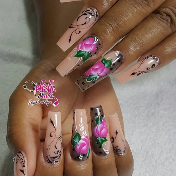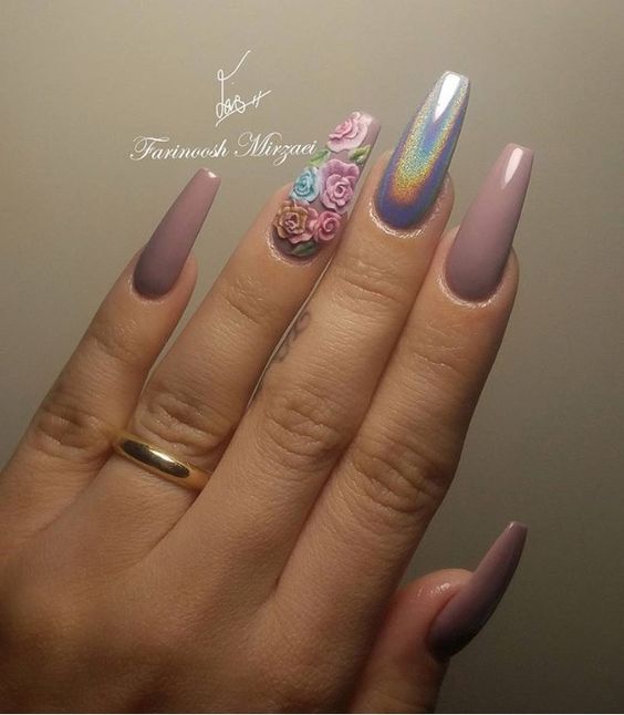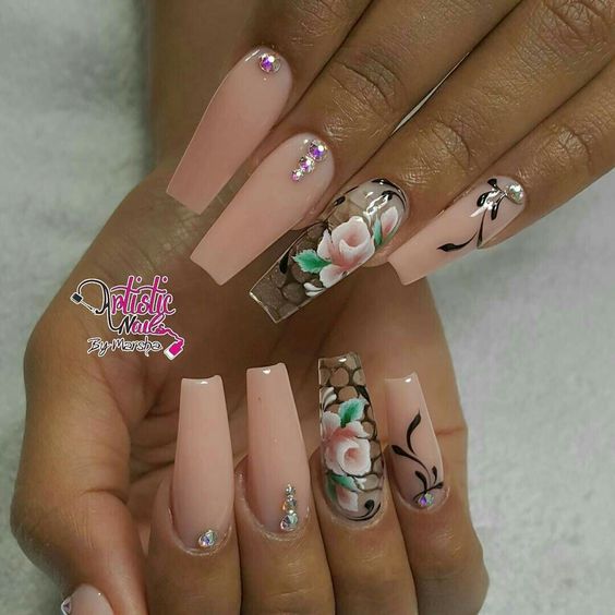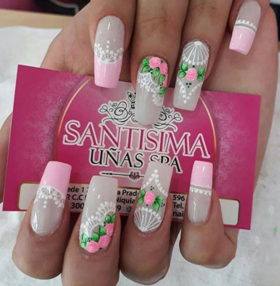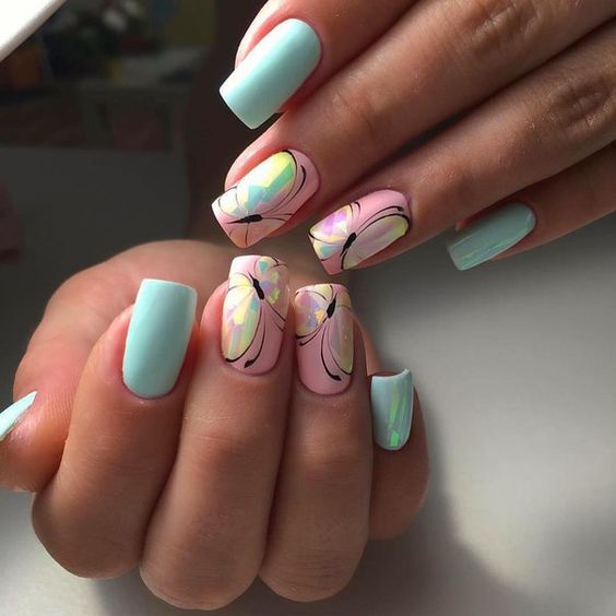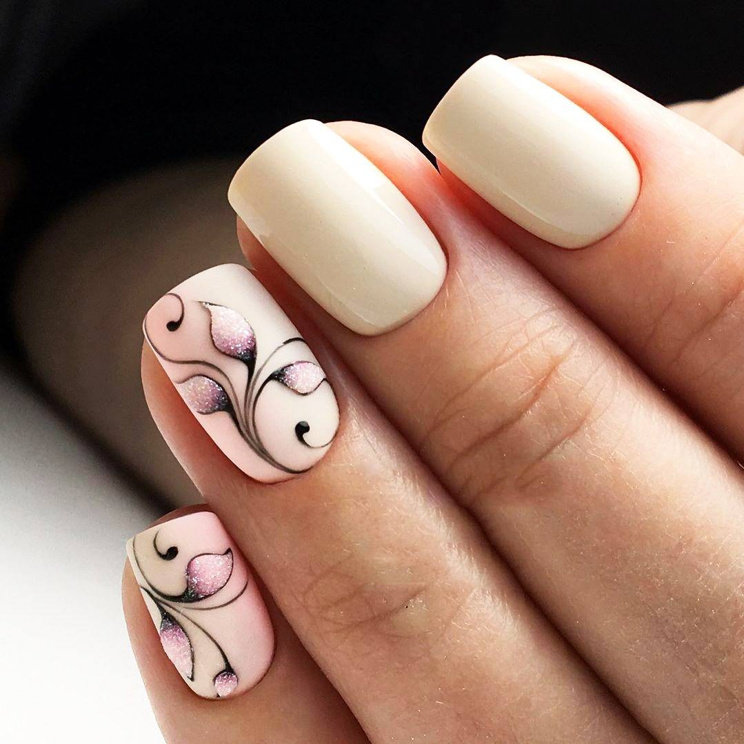 Квіткові орнаменти на пастельних відтінках нігтьового покриття виглядають бездоганно. Перевагою квіткового ніжного манікюру є те, що він підходить абсолютно для будь якої жінки в літньому сезоні. Варіантів, які пропонують професійні майстри нейл-арту, маса і всі вони незрівнянні. Якщо вам потрібно підкреслити образ легкістю, субтильностью, ненав’язливістю, м’якістю, то обов’язково вибирайте ніжний манікюр з флористичними мотивами. Всі техніки створення оригінальних і неповторних квітів на нігтях, що застосовуються фахівцями в області нейл-дизайну, досить вдало підкреслюють жіночність, будь то простий малюнок бутона або масштабна квіткова ліплення. Ніжне поєднання на нігтях квітів і базового світлого покриття дозволяє зробити образ більш жіночним і крихким.
