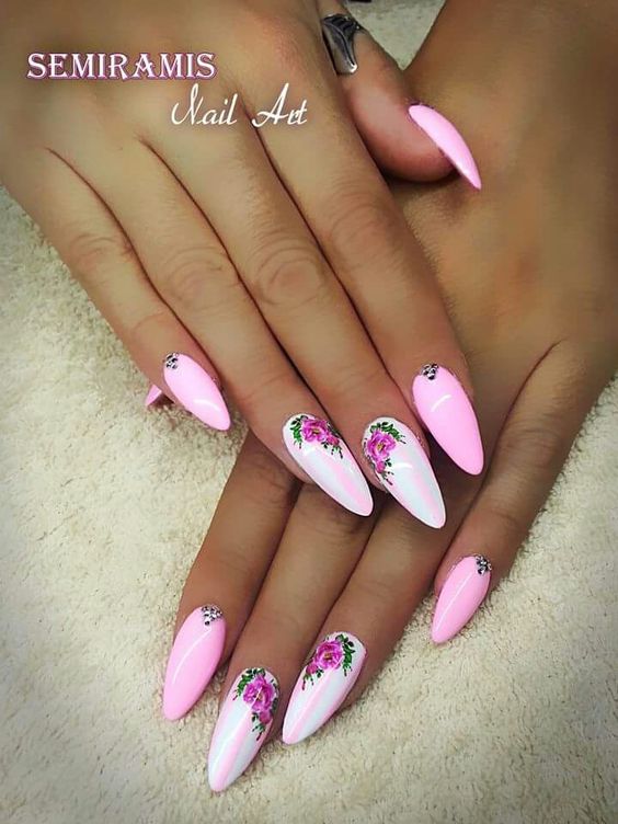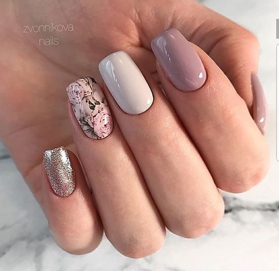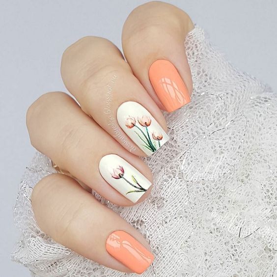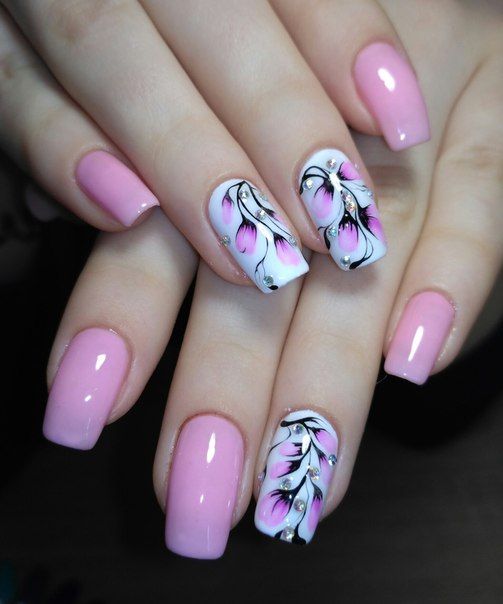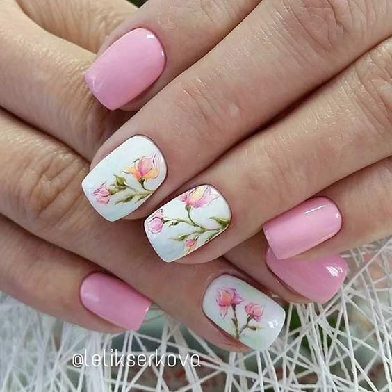Квіткові орнаменти в ніжному весняному манікюрі 2021
