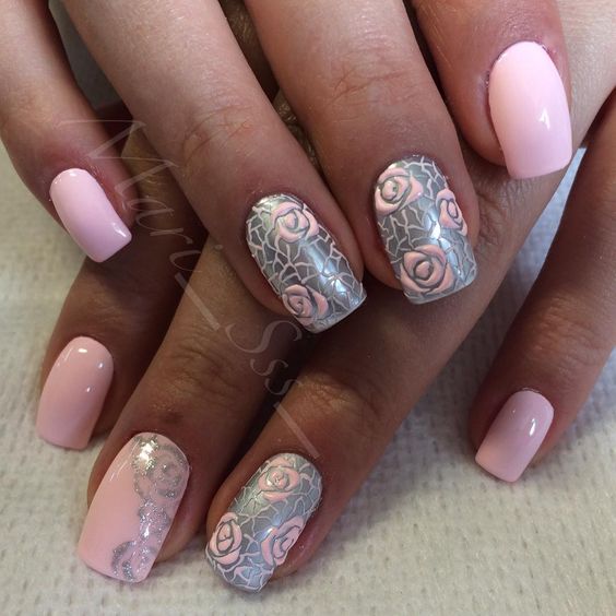 Звичайно ж, у кожної жінки знайдеться пару лаків пастельних відтінків будинку, не кажучи про те, що майстрів манікюру їх десятки. Неймовірні поєднання певних відтінків лакового покриття дозволяють домагатися неперевершеного ефекту від ніжного манікюру. Навіть з нюдовым покриттям добре поєднуються будь-які непомітні відтінки. Пропонуємо подивитися на фото найвдаліші варіанти поєднання кольорів в ніжному манікюрі, таких як: рожевий з золотим, сірий з бежевим і білий з багатьма легкими і ненав’язливими відтінками.