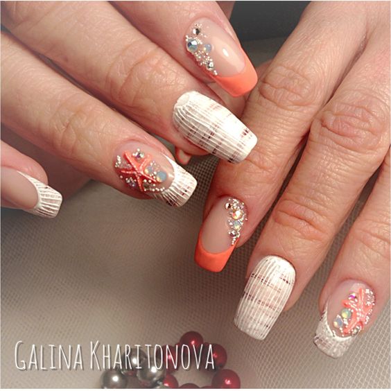 Дуже легко і ненав’язливо доповнюють ніжний манікюр всілякі елементи декору для нігтів. Декоративні стрази і кристали сваровскі, пісок, фольга – все це чудово вписується в рамки ніжного манікюру. На ніжному манікюрі спеціальні засоби прикрас для нігтів виглядають витончено, навіть в деяких варіантах надають строгості образу. Вибираючи один з варіантів ніжного манікюру на фото далі, ви зможете також легко підкреслити м’якість характеру, відсутність негативних емоції та позитивний настрій.
