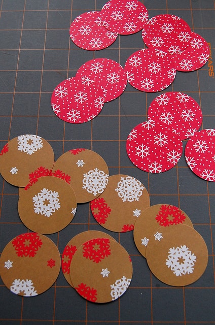 Підготуємо заготовки для створення новорічної іграшки. Для цього на папері або картоні малюємо кола однакового розміру з допомогою циркуля і вирізаємо їх. В результаті має бути двадцять одна заготовка.