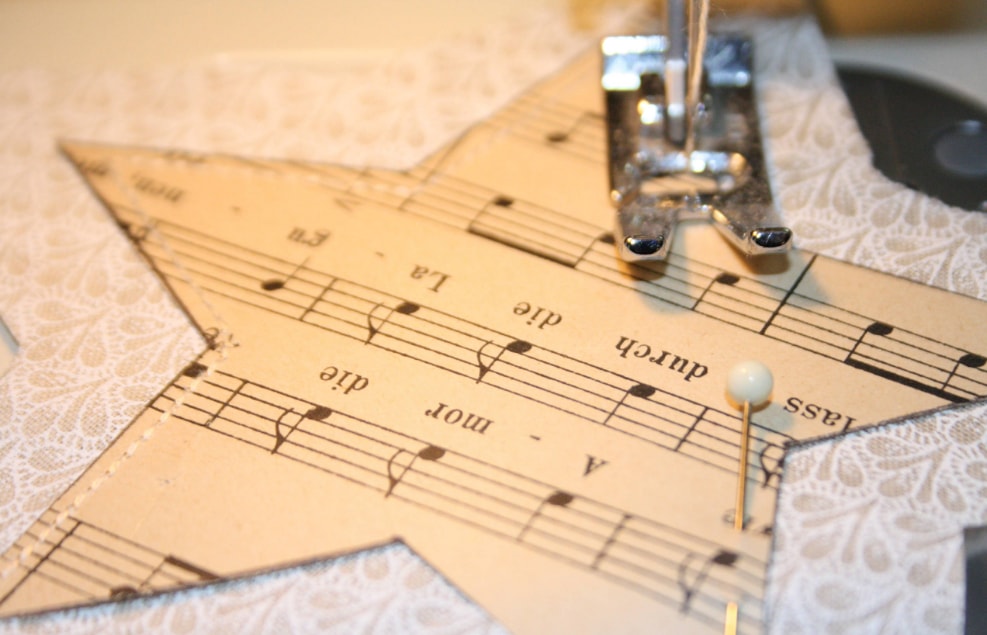 Зшиваємо паперову заготовку з тканинної з допомогою швейної машинки.