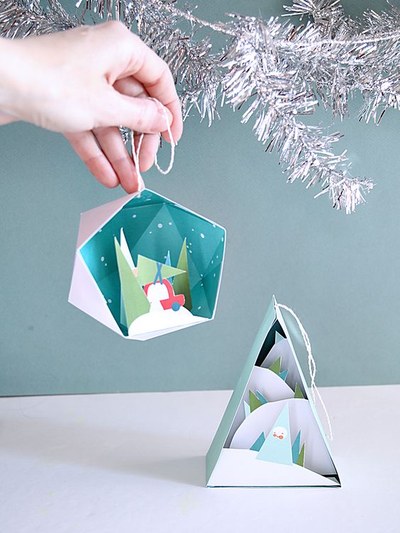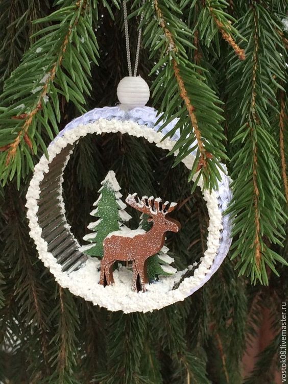 Протягуємо в дірочки стрічки або красиві ниточки і зав’язуємо їх. Стильний, оригінальний декор для ялинки готовий.