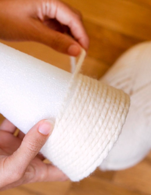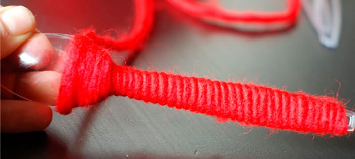 Поверх клею щільно намотуємо пряжу червоного кольору.