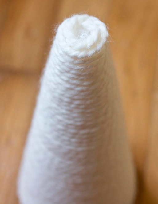 Обмотуємо конус до самого верху і закріплюємо кінчик клеєм.