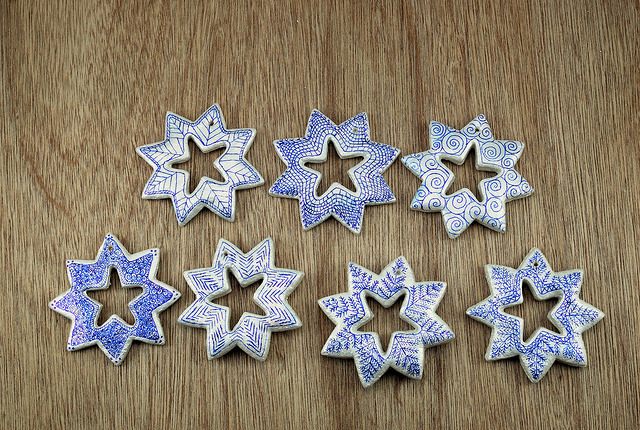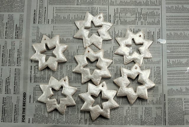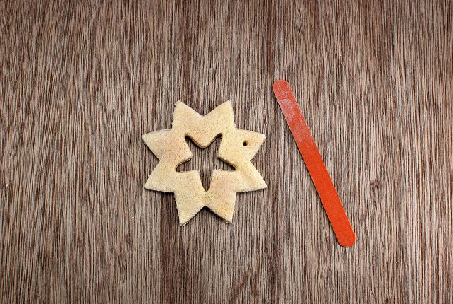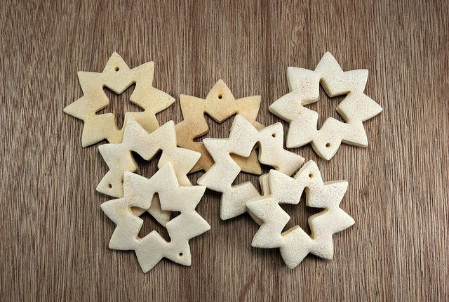 Повторюємо те ж саме з рештою тестом і робимо креативні сніжинки. Розігріваємо духовку на 80 і випікаємо заготовки протягом чотирьох годин. Дуже важливо, як мінімум один раз в годину перевіряти їх, щоб не підгоріли. Виймаємо їх і залишаємо на добу остигати і сушитися. Краї шліфуємо і шорсткості за допомогою пилочки.