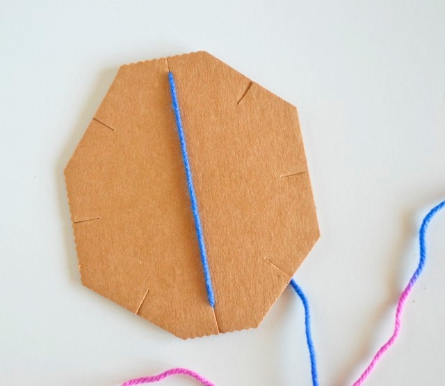 Протягуємо нитку зверху в щілину, а потім знизу. Повторюємо те ж саме за годинниковою стрілкою до тих пір, поки не вийде певний малюнок.
