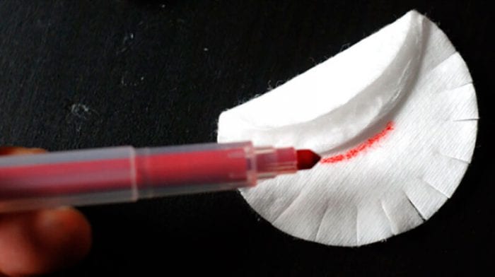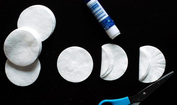Для початку загинаємо ватний диск, як на фото і робимо надрізи по краях.