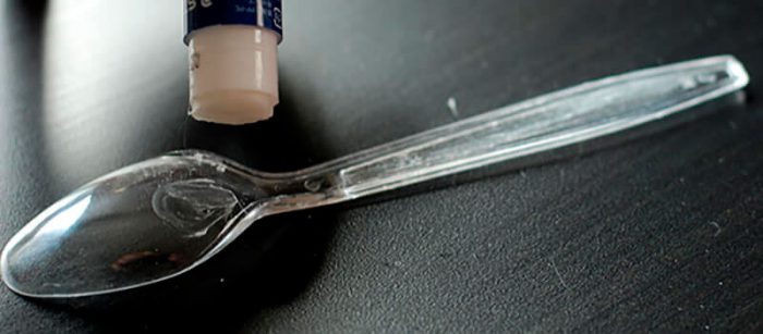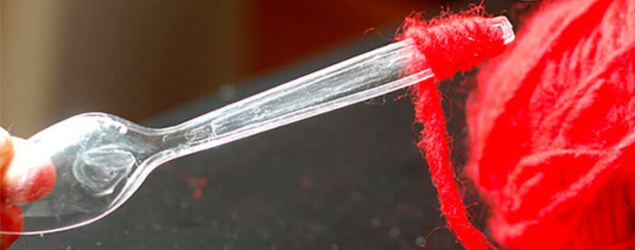 На пластикову ложку, за винятком кінчика, наносимо клей.