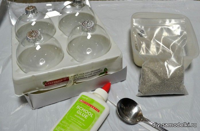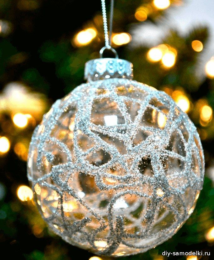 Зробити такий прекрасний кулю на новорічну ялинку можна буквально за кілька хвилин. Для цього беремо прозора куля і наносимо на нього клей тонкою смугою, формуючи гарний візерунок.