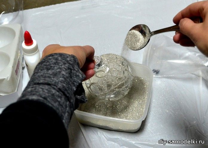 Посипаємо кулька блискітками і залишаємо на двадцять хвилин висихати.