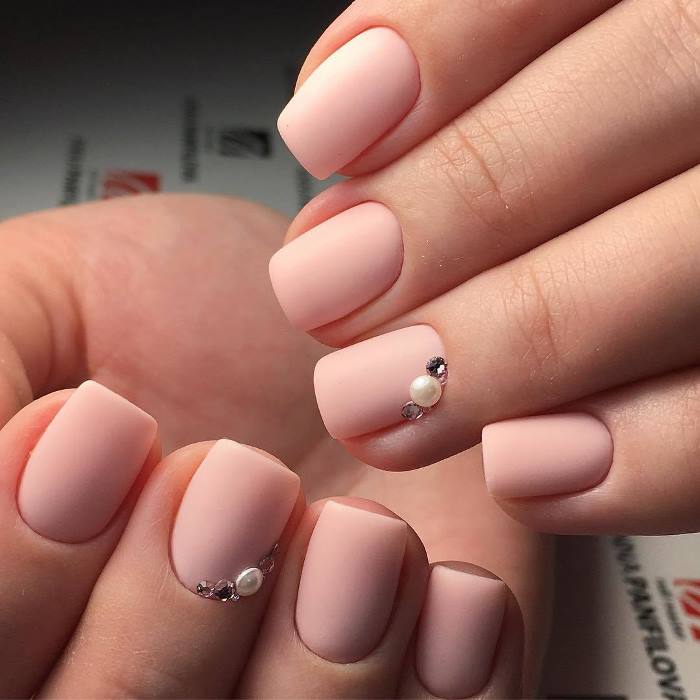 Окремо варто відзначити нюдовый манікюр. Він завжди буде актуальним, незалежно від пори року. Краще всього виглядають такі відтінки, як пудровий, бежевий або тілесний. На нігтиках вони ледве помітні, тому чудово підходять навіть для робочих днів в офісі. Але якщо такий варіант для вас занадто нудний, то рекомендуємо просто додати акцент. Приміром, невеликий малюнок, напис або додатковий декор.