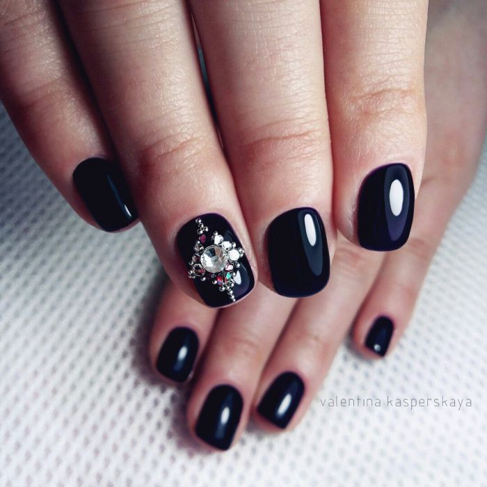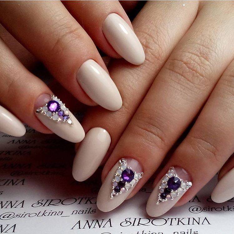 Мабуть, найпопулярнішим варіантом декору для нігтів є стрази. З їх допомогою можна реалізувати будь-яку фантазію і перетворити навіть самий простий манікюр. Особливо з урахуванням того, що існує велика різноманітність стразів за формою і кольором. Їх можна комбінувати між собою, викладати цілі малюнки або ж використовувати кілька штук в якості акценту. Досить цікаво виглядає манікюр, якщо на одному або двох нігтики викласти вертикальну або горизонтальну смугу зі стразів. Саме такий варіант останнім часом користується особливою популярністю.