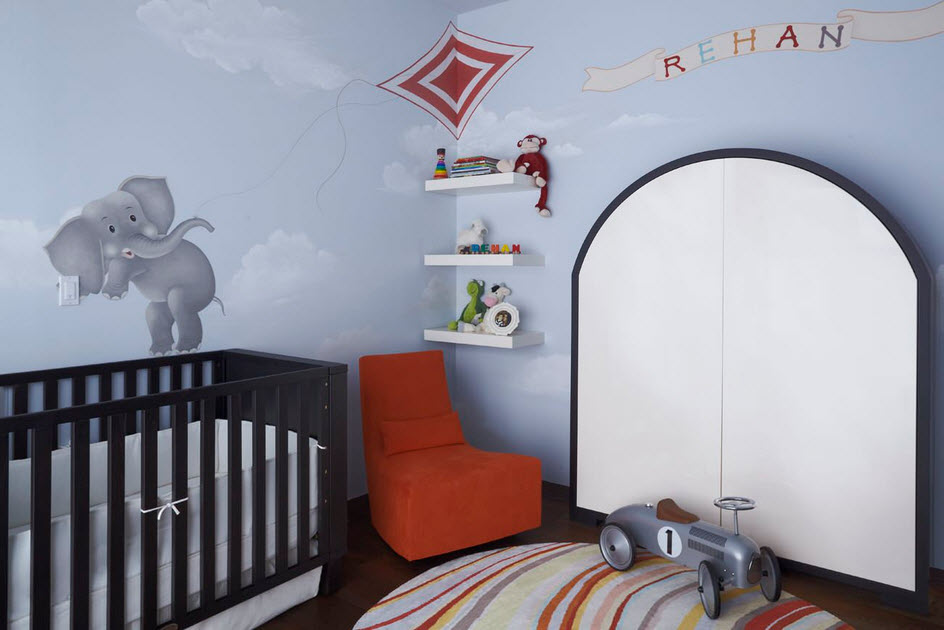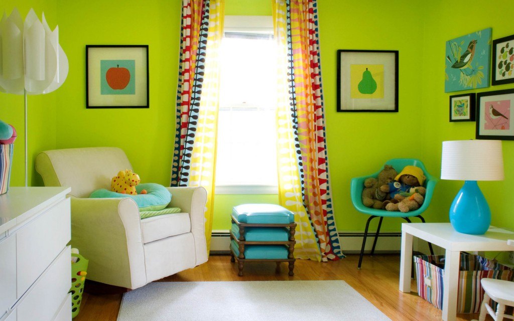 Дитяча кімната для малюка є його власним світом і простором. Батьки добре знають своє чадо і повинні в перші роки життя малюка визначатися, в які тони оформляти стіни в дитячій. Для заспокоєння гіперактивності підійде нейтральна спокійна палітра, соромливій малюкові для додання сміливості і тонусу – яскраві фарби.