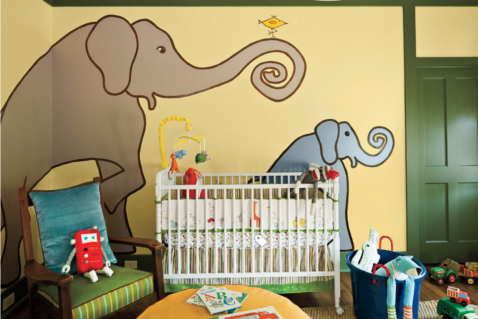 Якщо звернутися за допомогою до художника-заявнику, то однотонну стіну дитячої можна розписати фарбами, а точніше застосувати тематику, близьку малюкові.