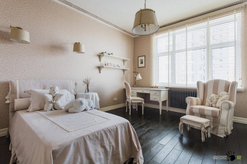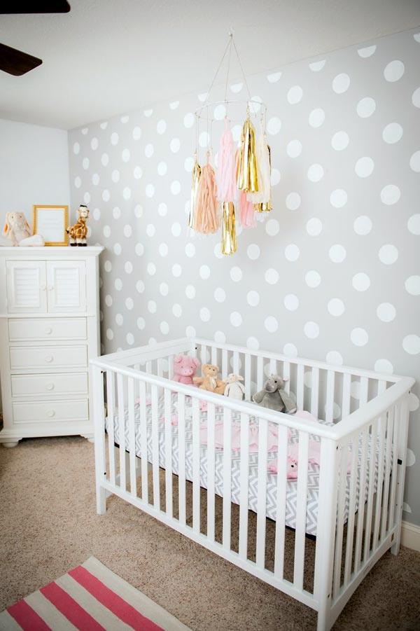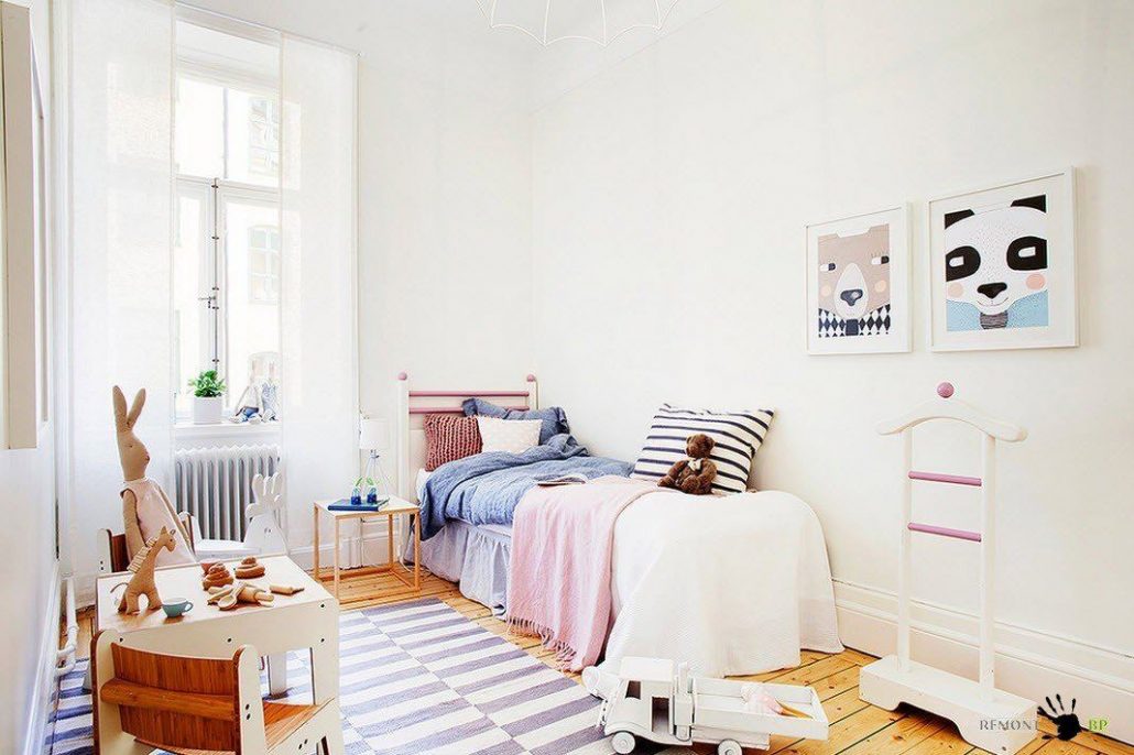 Якщо розміри кімнати невеликі, то білий колір візуально збільшить обсяг дитячої. Альтернативою можуть стати світлі шпалери з ледь помітним орнаментом. Атмосфера в кімнаті стане цікавою, а малюнок не буде розбурхувати емоції малюка.
