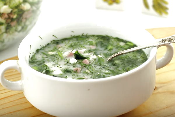 Це блюдо можуть готувати по-різному, але все одно до складу будуть входити стандартний набір продуктів: огірок, зелень, яйця, картоплю. Цей варіант ще називають дачним, так як такі продукти завжди є в наявності. Також можна додати ковбасу, рибу або відварне м’ясо. І все це заливається квасом, кефіром, водою з оцтом або мінералкою.
