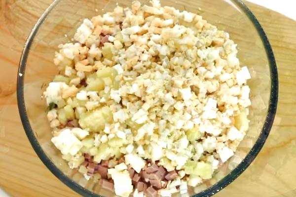3. Овочі та яйця ріжемо кубиками або подрібнюємо на комбайні.