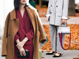 Ще стилісти рекомендують експерименти у вигляді ансамблю верхнього одягу забарвлення кемел і стильних брючних костюмів насичених відтінків. На сьогоднішній день дуже популярний колір «пляшка». Його потрібно носити зі стриманим бежевим пальто і взуттям на підборах. Щоб створити образ для прогулянки, каблук можна замінити кросівками, а клатч або сумку залишити вдома, захопивши з собою рюкзак.
