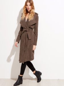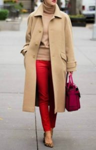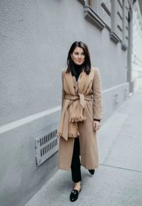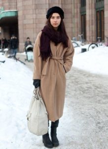 Безпрограшний варіант, який давно став класикою – подовжене пальто спокійного, приглушеного відтінку (найчастіше, пісочного або світло-коричневого), подвязанное поясом. Аксесуари до подібного способу, особливо для прихильниць традиційних луків, краще підбирати в тон верхнього одягу, хоча допускається робити яскраві акценти на шарф, взуття або, наприклад, сумку.