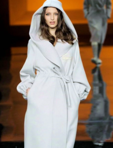Класика: прямий крій, об’ємний комір і незмінний пояс ніколи не виходить з моди;