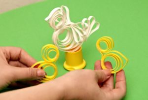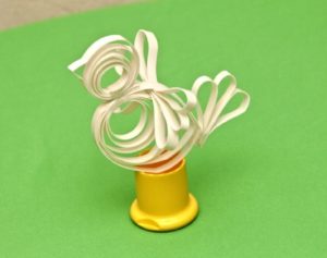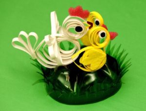 Далі сформувати голову, тулуб і хвіст великодньої курки з білої смужки в техніці квіллінг.