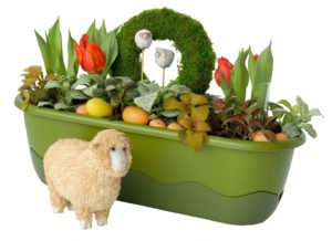 Так само для прикраси двору можна використовувати великодні композиції в ящиках: