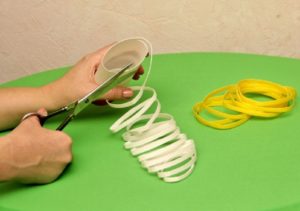 Першим ділом потрібно нарізати порожні пляшки тонкою смужкою по колу.