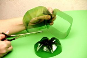 Із зеленої пляшки вирізати дно і дві смужки. Це буде основою композиції.