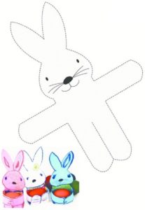 Для цієї композиції до Великодня своїми руками знадобляться: махрова серветка, гумка для грошей (підійде і стрічка, але з гумкою зручніше), клей, ножиці, кольоровий картон для вічко, ватні кульки для носа. Вийде милий кролик, як на фото нижче.