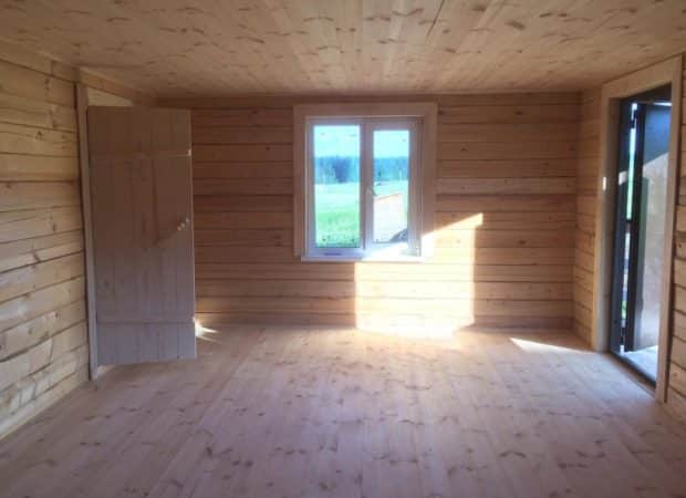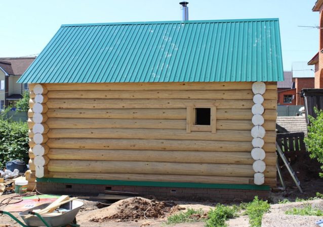 Споруда розміром 6х6 включають в себе парилку 15 кв. м. Містка парна має значний плюс: рух 8 осіб всередині відбувається вільно. Поруч встановлюють банну піч, яка підтримує задану температуру. У парильні кріплять полоки до основи з бруса, дерево попередньо обробляють олією для захисту.