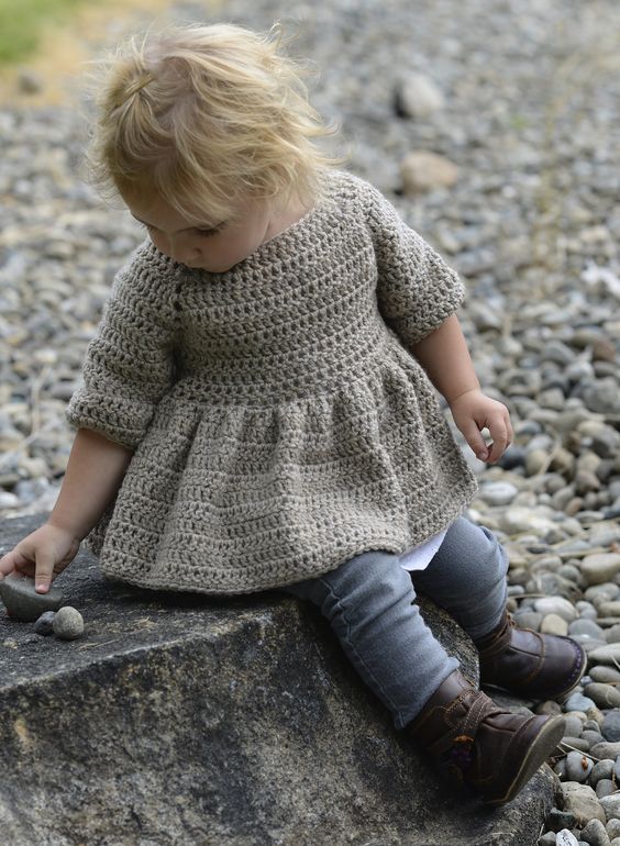 Сучасна в’язана мода не обійшла стороною сукні однорічних леді. Сьогодні дуже популярні в’язані сукні для маляток, максимально наближені до дорослим моделями. На крихітній фігурці дуже мило і чарівно виглядає сукня, пов’язане гачком. Сукня силуету трапеція дуже наближене до дорослого моді, але саме воно є оптимальним варіантом для маляток. В’язана модель дуже зручна для урочистого випадку і на кожен день. Навіть під час свята ваша дівчинка буде виглядати стильно і до того ж їй самій буде комфортно. Вільна спідниця розкльошена до низу дає можливість вашій дитині почувати вільно, весело бігати і стрибати.