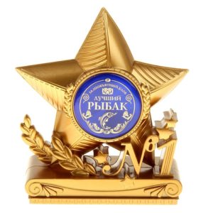 - кубок або медаль з іменним гравіюванням «Кращого рибака», неважливо, чи буде виконано виріб з дорогоцінних металів, головне, що воно займе своє почесне місце у колекції чоловіка після вручення на 23 лютого;