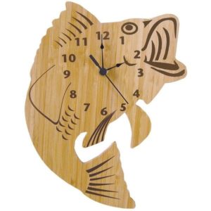 - Годинник на стіну у вигляді риби – юним майстрам необхідні будуть старий шматок фанери, акрилові фарби, робочий годинниковий механізм, лобзик, суперклей. Проявивши фантазію, вони зможуть зробити дійсно унікальний презент.