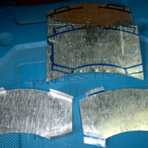 Важливо: Вирізаючи противоскрипную пластину, пам’ятайте, що її форма повинна точно збігатися з формою колодки. Якщо пластина буде мати більшу площу, ніж колодка, виступають її частини будуть заважати гальмування автомобіля.