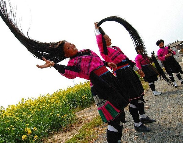 Жінки народності Яо, що живуть в провінційній китайському селі Хуанло, прославилися на весь світ тим, що всі вони мають довге волосся і не сивіє до 80-ти річного віку.