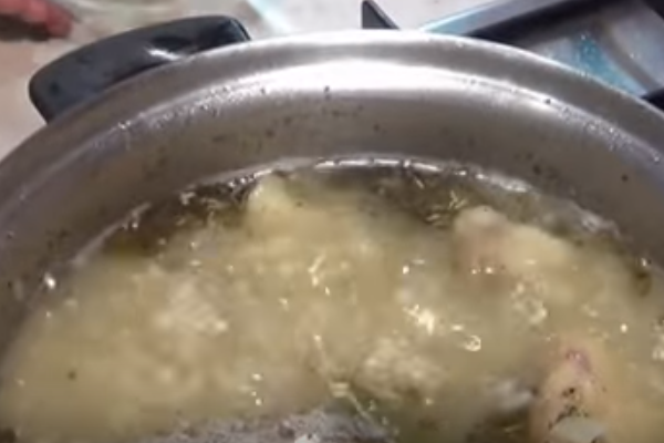 3. Вміст бульйону витягніть і процідіть його. Це потрібно, щоб позбутися від дрібних кісточок і непотрібних тепер продуктів (перець, цибулю, лавровий лист). Потім знову м’ясо з рідиною доводимо до кипіння.