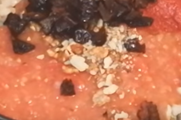 5. Тепер товчемо в ступці або подрібнюємо ножем волоські горіхи. Скидаємо в суп чорний, червоний перець, а також шафран і чорнослив. Останній ви теж можете порізати або залишити цілими. Готуємо ще 5 хвилин і вимикаємо.