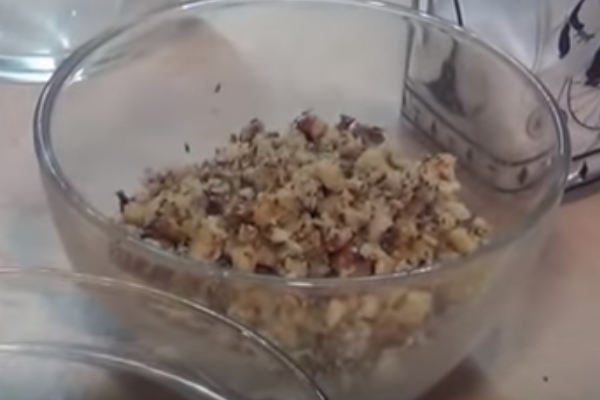 6. Волоські ядра подрібнюємо в блендері в дрібну крихту. Змішуємо їх з хмелі-сунелі і чорним перцем.