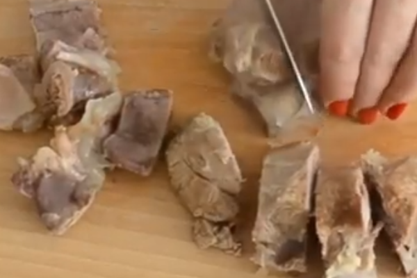 2. Якщо ви брали м’якоть, то дістаньте і поріжте на невеликі шматочки. Кістки бажано також прибрати для зручності. Складаємо все назад.