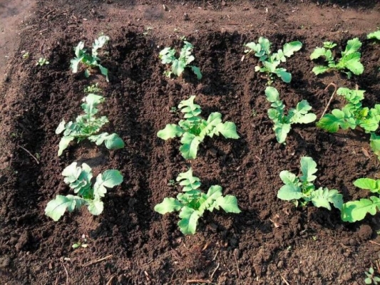 - Спочатку площа під посадку вирівнюють граблями, і формуються борозенки, глибиною 3 див. Насіння рослини повинні розташовуватися на глибині 2 див.