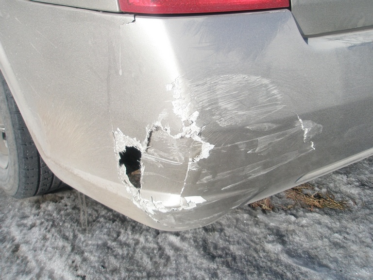 - Пробої і відколи. Наскрізні пошкодження великої площі. Частіше всього виникають на краях бампера при зіткненні з перешкодою під «незручним» кутом.