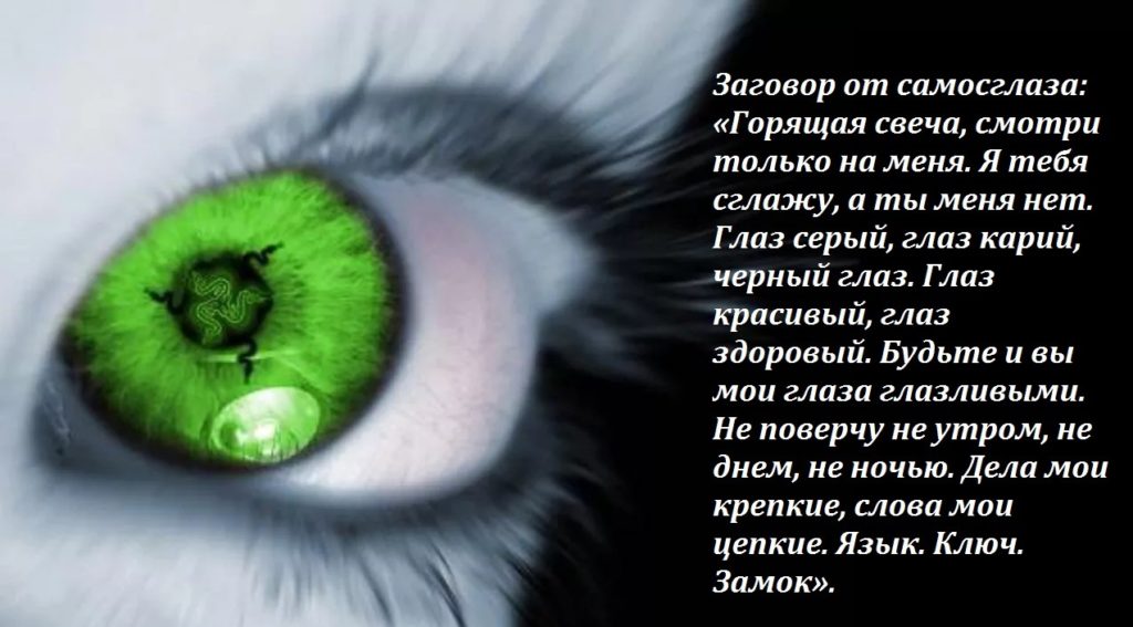 Змова від самосглаза читають після заходу сонця. Всі атрибути магічного ритуалу розкласти на застеленому тканиною столі. Свічки запалити від сірника, пасмо волосся покласти поруч й вимовити текст змови.