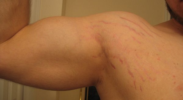 Розтяжки на руці з’являються у вигляді багряних або білих смуг. Як вони виглядають, можна подивитися на фото.