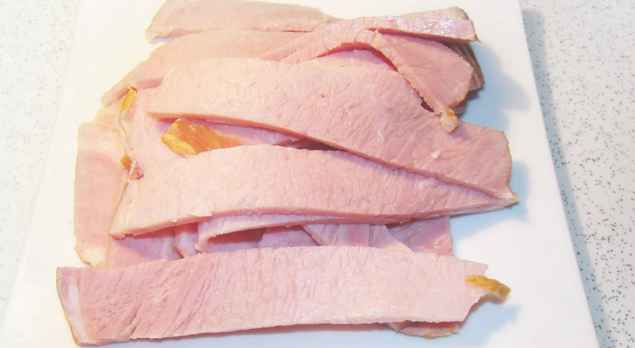 1. Беремо шинку і розрізаємо на шматочки