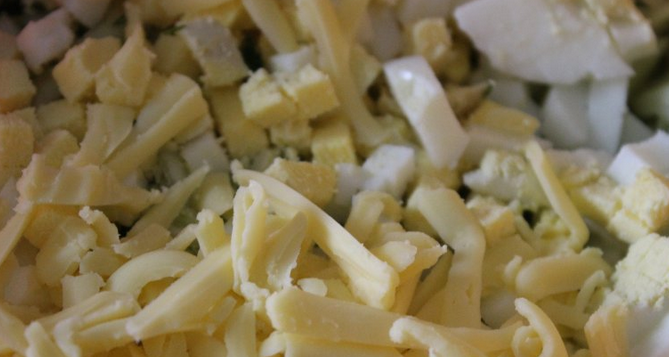 8. Поріжемо яйця і сир.