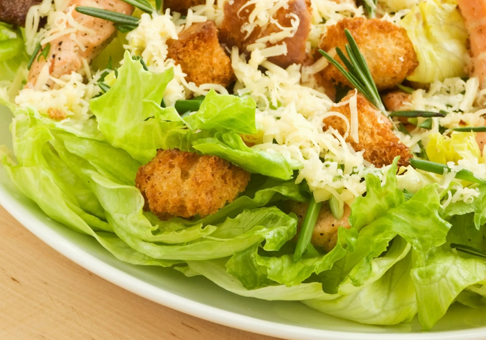 Салат Цезар— це найбільш популярна страва в усьому світі, винайдений Цезарем Кардіні. Цю їжу готують в основному за класичним рецептом де інгредієнтами є солоні грінки, листя салату— ромен і сир пармезан заправлені особливим соусом, тому в кафе, ресторанах, беруть його за основу ,а потім додають різний склад продуктів. Ми з вами зробимо кілька способів приготування Цезаря, але почнемо з класичного.