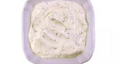 5. У невеликій тарілці змішуємо гірчицю, сир (не повністю), перець і йогурт натуральний без цукру. Ця буде заправка для салату.