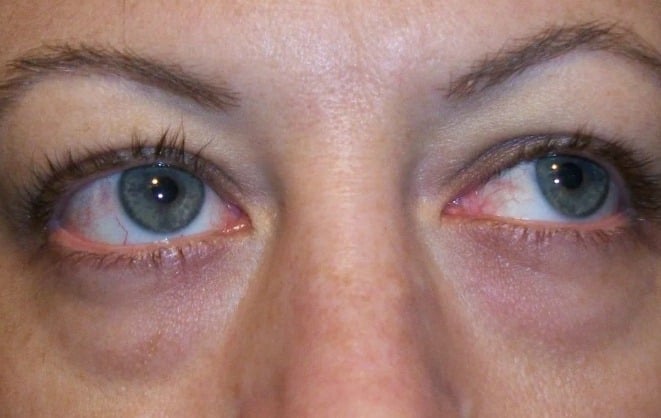 Синці під очима – симптом зневоднення, ознака викликаної їм інтоксикації. При супроводі стану сухістю в роті, водний баланс відновлюють з допомогою заміни чаю і кави на 2 л чистої води щодня.