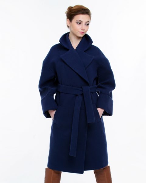 До чорнильно-синьому пальто з капюшоном спортивного крою можна одягти джинси з темного деніму і білосніжні кросівки або кеди. Дуже жіночно довге розкльошені пальто з широким поясом виглядає в тандемі з летять сукнею або спідницею максі, прикрашеної дрібним горошком або квітами. Модна сьогодні одяг оверсайз ультрамаринового відтінку добре гармонує з вузькими джинсами блакитного кольору і місткою рудою шкіряною сумкою.